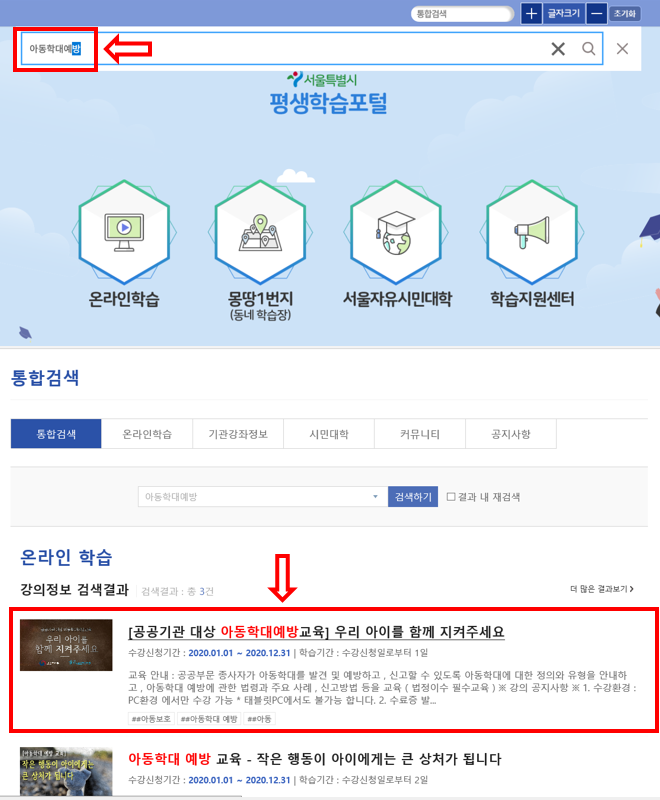 저는 이번 아동학대 교육은 서울시 평생 학습포털에서 진행했습니다. 교육 시간이 한 시간이라 별생각 없이 이수했습니다.