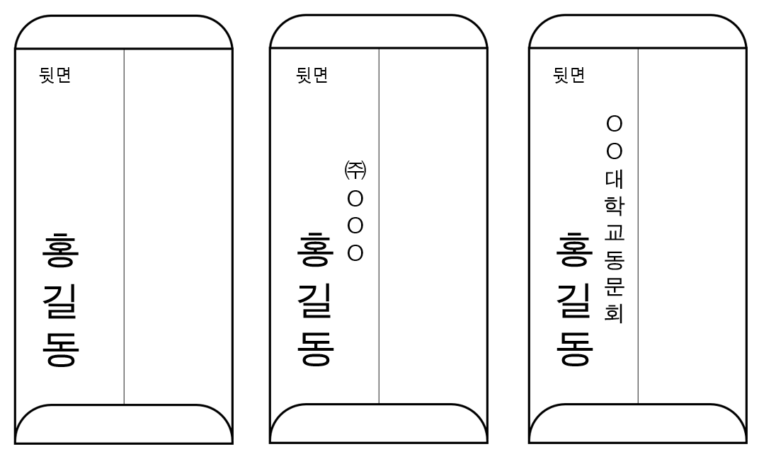 축의금 봉투에 이름 위치는 봉투 뒷면의 좌측 하단부에 쓰면 됩니다. 소속을 작성해야 한다면 이름 우측의 약간 상단에 위치하도록 적어주면 되겠습니다.