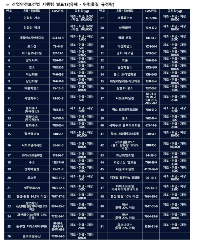 또한 대상 물질은 총 51가지로 구분됩니다.
