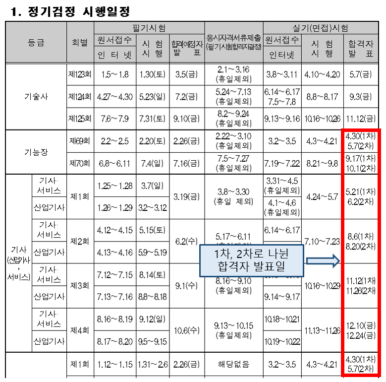 하지만 표를 보면 1차 합격 발표일과 2차 합격 발표일이 나뉘어 있습니다.