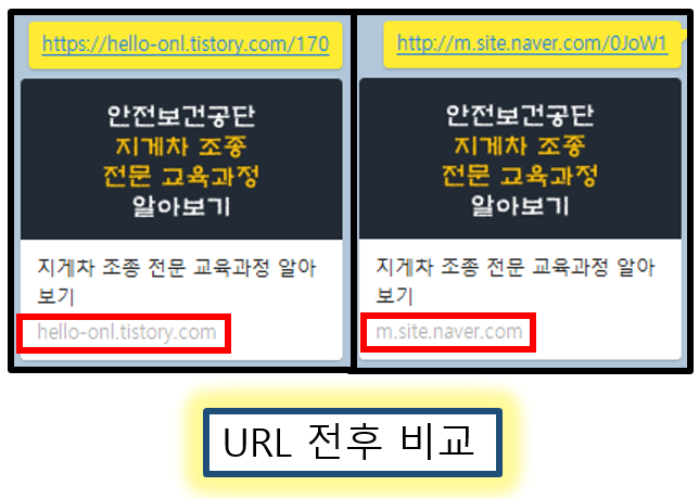 같은 썸네일과 같은 내용이지만 링크에 연결된 주소가 저의 개인 티스토리 주소가 아닌 네이버 사이트로 되어 있는 것만으로도 경계심을 낮출 수 있는 요소가 될 수 있습니다.