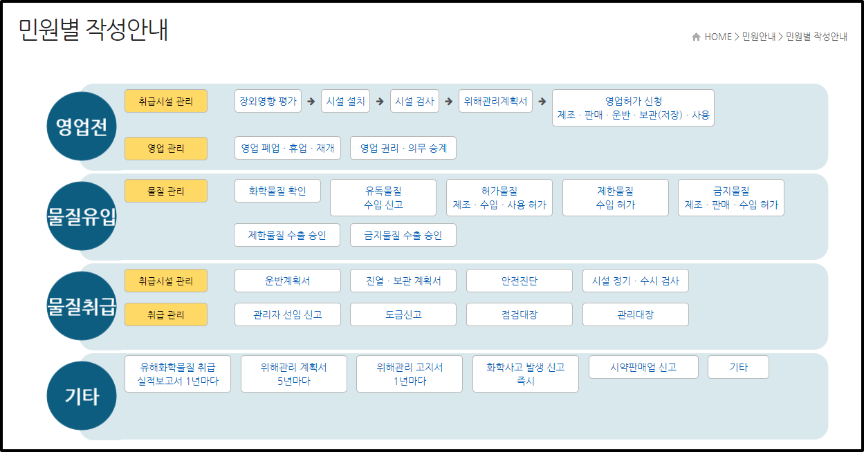 기존에는 관할 지방 환경청이나 기관의 방문을 통해 업무를 진행하였으나 이제는 화관법 민원 24를 통해 온라인으로 실시할 수 있도록 바뀌어 잘 활용하면 많은 시간을 절약할 수 있게 되었습니다.