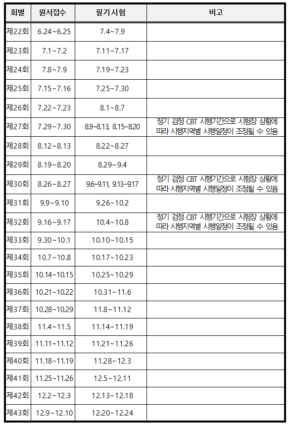 간단하게 인터넷 검색을 통해 언제 시험을 접수하고 응시할 수 있는지에 나와 있습니다. 원하는 날짜를 선정하여 열심히 준비하고, 응시하기 바랍니다.