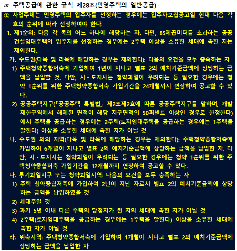 ② 주택공급 규칙상 1순위의 무주택세대 구성원이어야 합니다.