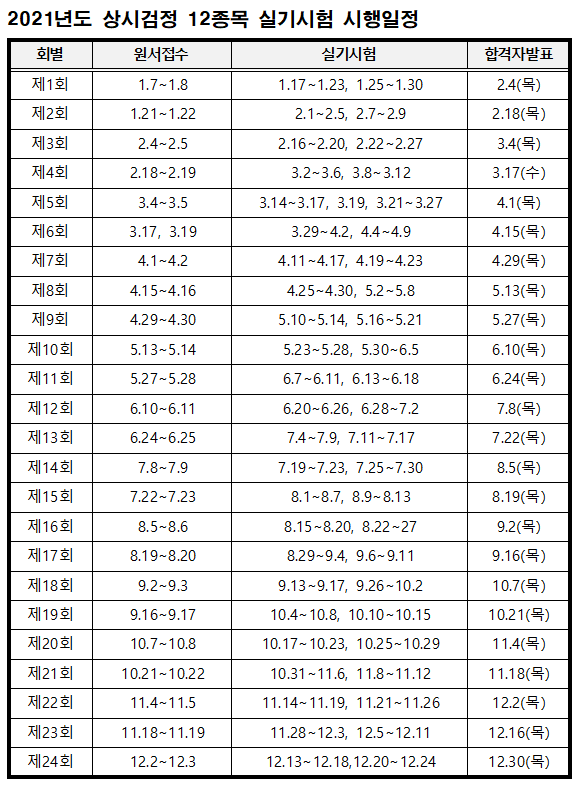 시험은 위의 일정에 따라 진행되며 여러 상황에 따라 일정이 변할 수 있기 때문에 응시하고자 하는 일정의 경우 유심히 지켜보는 게 좋겠습니다.