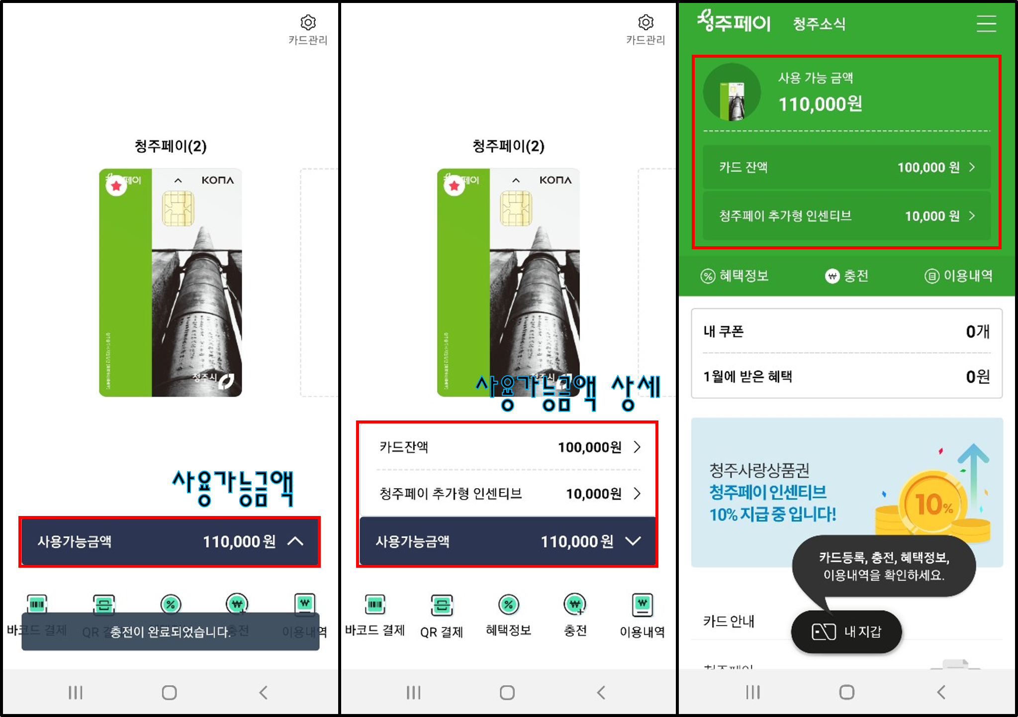 청주에서 사용할 수 있는 혜택이 큰 청주 페이에 대해 알아보았습니다. 청주 페이는 미리 충전해서 사용하는데요. 충전 금액의 10%를 더 충전해 주기 때문에 10만 원 충전하더라도 11만 원을 사용할 수 있습니다.