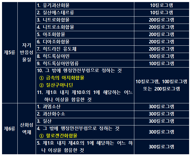 - 위험물 안전관리법 1류~6류 위험물