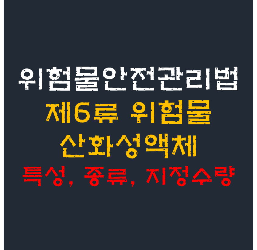 위험물 기능장, 위험물 산업기사 등 자격증을 취득하기 위해 알아야 하는 위험물 중 6류 위험물은 산화성 액체입니다. 산화성 액체의 경우 다른 류와 다르게 3가지 종류의 물질과 그밖에 행정안전 부령으로 정하는 물질로만 나와 있어 상대적으로 외우기가 쉬운데요.
