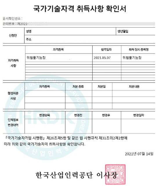 2021년 시행했던 69회 기능장 시험에서 위험물 기능장 최종 합격했습니다. 공부 시간을 최대한 줄이기 위해 전략적으로 접근하려고 노력했고, 그 결과 시간 투자는 최소한으로 하여 최종 합격까지 이어지게 되었습니다.