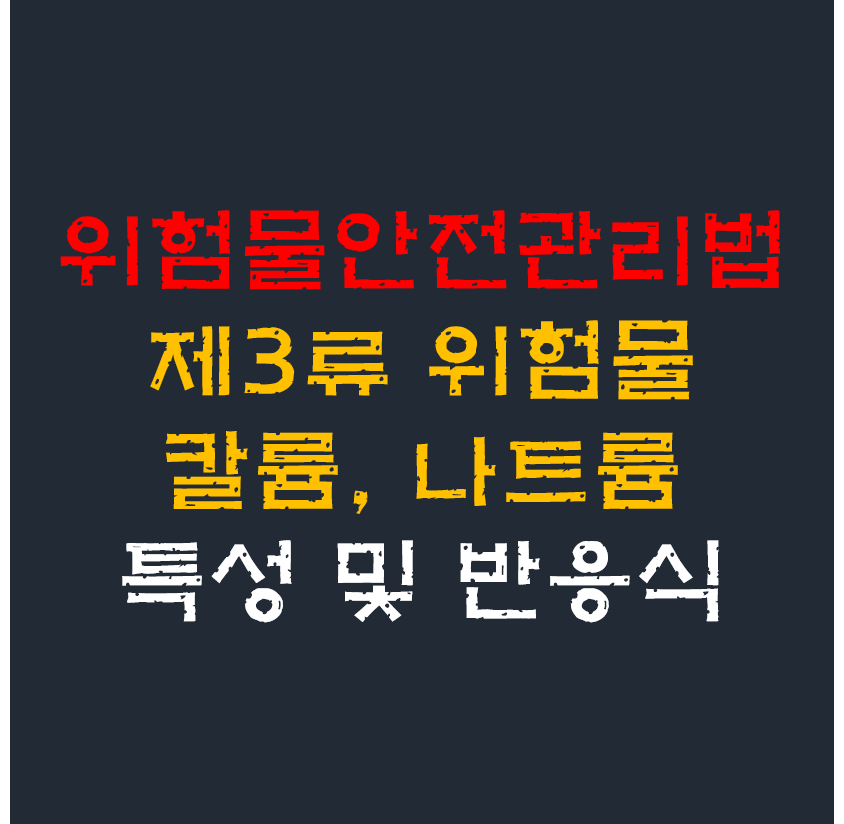 위험물 안전관리법에서 정하는 위험물 중 지정수량이 가장 낮은 물질이 있습니다. 지정수량 10kg으로 정해진 칼륨과 나트륨인데요. 물론 제5류 위험물 중 질산에스테르류와 유기과산화물의 경우도 마찬가지로 지정수량이 10kg이지만 우선 3류 위험물 중 나트륨과 칼륨의 특성과 반응식을 알아보도록 하겠습니다.