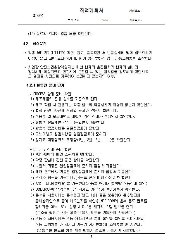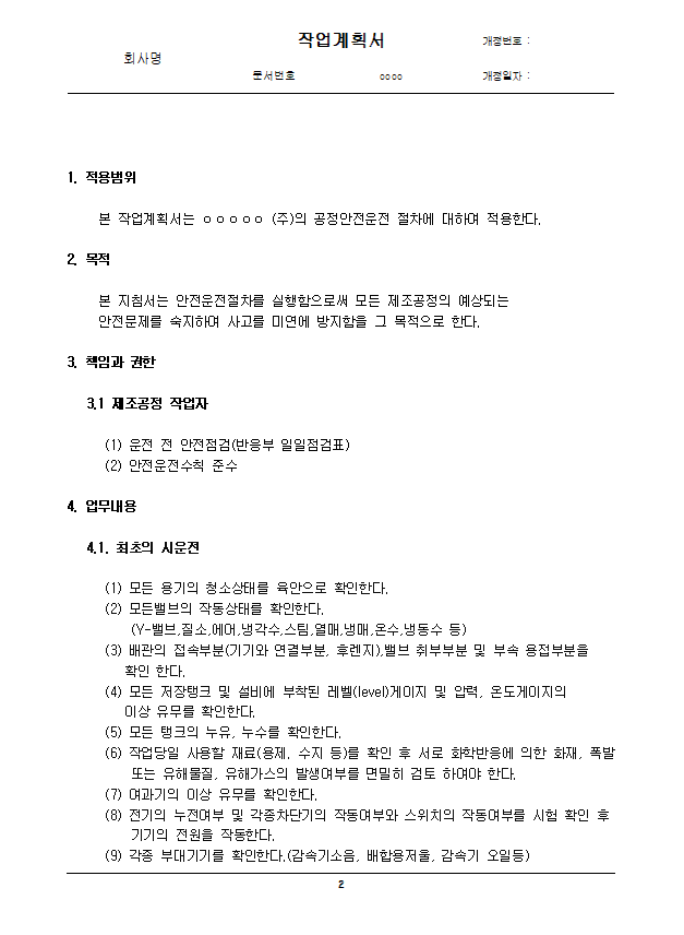 화학설비 작업계획서를 작성하고자 하는 사업장에서는 위의 내용이 포함된 작업계획서를 작성하여야 합니다.