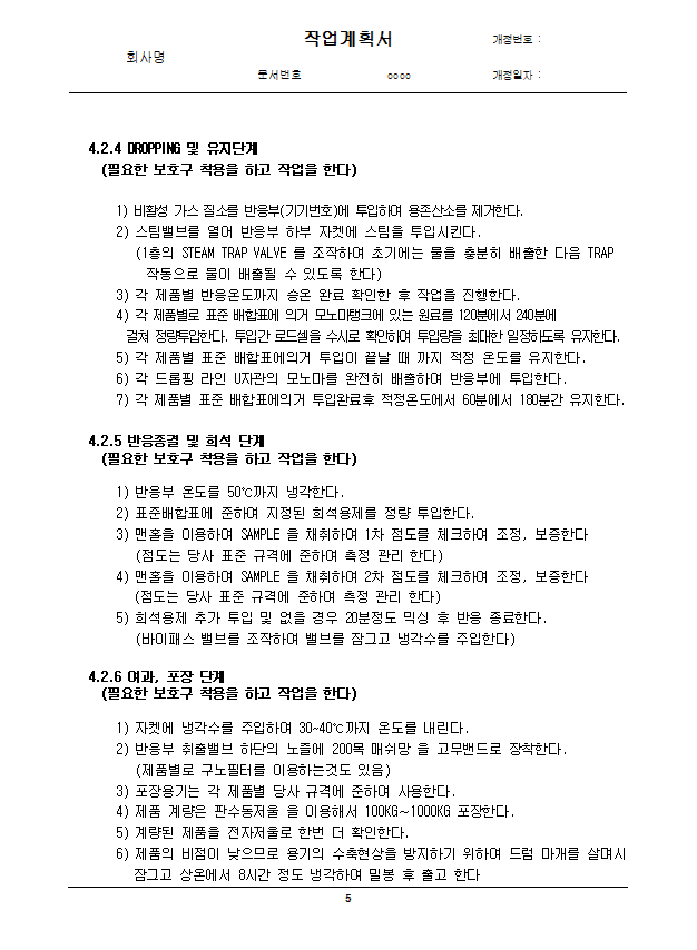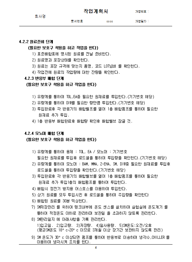 - 화학설비와 그 부속설비 작업계획서 작성 예시 다운로드