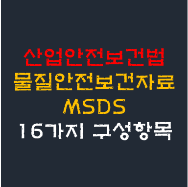 법에서 정하는 16가지의 물질 안전보건자료 항목이 있고, 그에 따라 구성 사항은 다음과 같습니다.