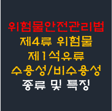 작성된 글은 단순히 수용성 또는 비수용성 물질의 종류와 특성에 대해서만 작성된 사항으로 제4류 위험물의 공통 성질 및 소화 방법 등이 작성된 아래 링크의 글을 먼저 보는 것을 추천합니다.