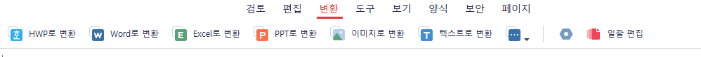 또한 상부에 보면 PDF파일을 한글파일로 변환하거나, 워드 파일로 변환, 엑셀 파일로 변환, 피피티 파일로 변환 등 다양한 기능을 가지고 있으므로 PDF를 수정하여 사용해야 하는 경우 해당 기능을 통해 수정하여 사용할 수 있습니다.