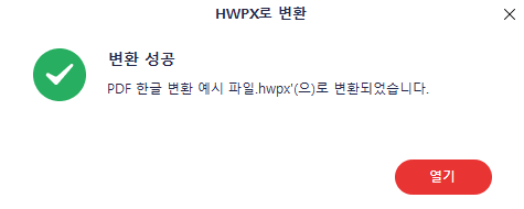 변환이 완료되면 “변환 성공”이라는 내용과 함께 [파일 이름]으로 변환되었습니다.라는 팝업창이 뜨며 완료됩니다. 파일의 크기에 따라 달라지겠지만 상당히 빠른 시간에 변환이 완료되네요.