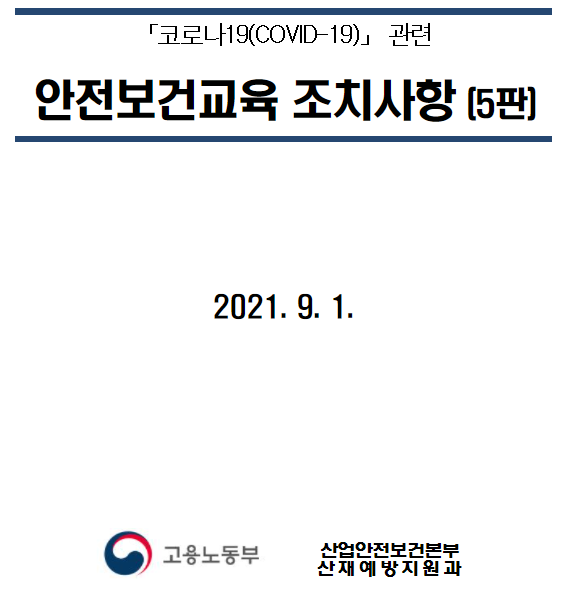 문제는 요즘 코로나19로 인해 코로나19 관련 안전보건교육 조치사항[5판]에 따른 조치사항이 나오며, 약간의 혼선이 빚어질 수 있다는 점입니다.