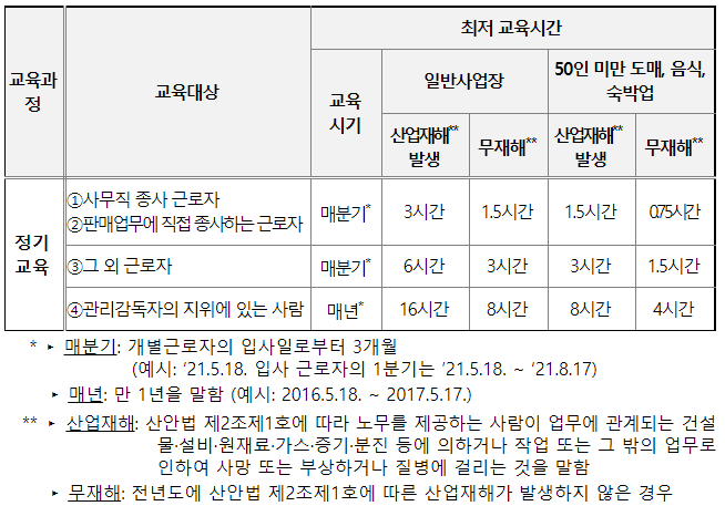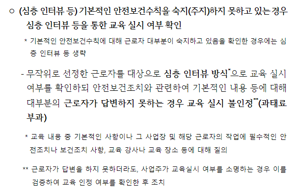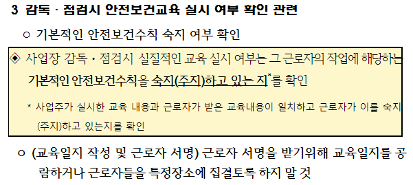 물론 이런 사항을 미리 파악하고 자체적으로 집체 또는 현장교육을 실시하거나 관리감독자 우편 교육을 받는 경우 문제가 되지 않을 수 있습니다.