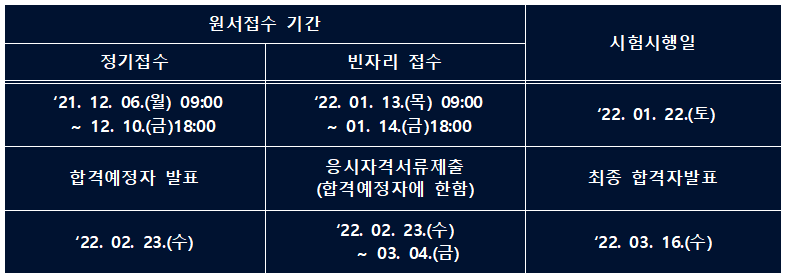 정기 접수: 2021. 12. 06.(월) 09:00 ~ 12. 10.(금) 18:00 【5일간】
