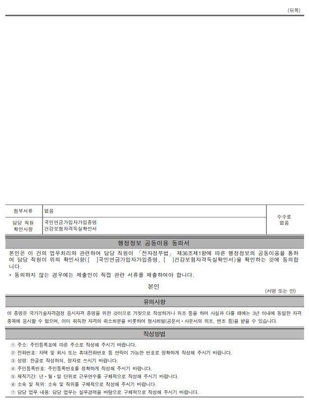 응시자격서류는 온라인뿐만 아니라 오프라인으로 제출하는 방법도 있습니다. 오프라인의 경우 접수 신청서를 별도로 작성하고, 전국 한국산업인력공단 지역본부 또는 지사 자격시험부에 방문 또는 우편 접수를 통해 접수 가능합니다. 한동안 코로나 19로 인해 가급적이면 우편 접수를 하기를 권하곤 했습니다.