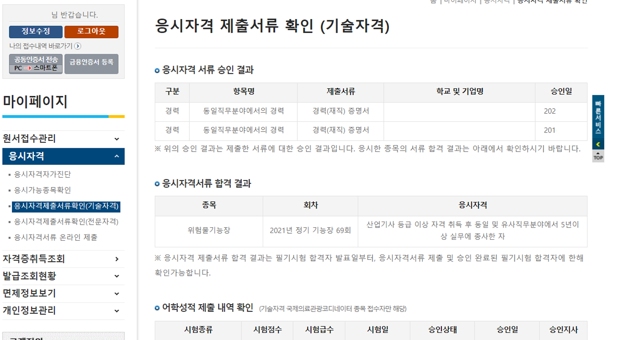 응시자격이 적합하지 않거나 응시자격서류가 부적합된 경우 필기시험 합격 예정이 무효 처리되기 때문에 정해진 기한 내에 제출하고 인정을 받아야 합니다.