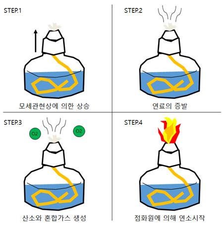 ① 액체 연료에 심지가 연결되어 있는 경우 모세관현상에 의해 연료 상승
