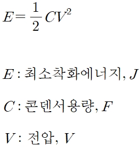 최소점화에너지는 다음과 같은 식으로 계산한다.