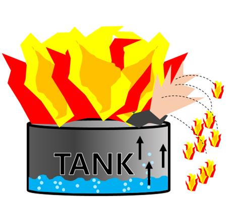 Boil Over는 유류탱크 내부에 물이 존재하면 비중 차에 의해 하부에 고여 있게 된다. 이때 탱크 외부로부터 화재 등에 의해 열을 받게 되는 경우 상부의 액면으로부터 하부로 열이 전달되며, 탱크 하부의 물과 접촉하면 급격히 증발한다. 이때 상부의 유류를 밀어 올리게 되고, 불이 붙은 유류가 외부로 튀기는 현상을 말한다. Boil Over는 물이 존재해야 발생하기 때문에 탱크 내부에 물이 고이지 않도록 하고, 탱크 하부에 드레인 밸브를 설치하여 예방할 수 있다.