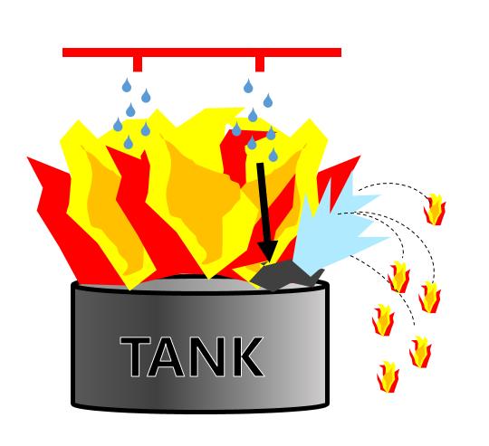 비등 액체 팽창 증기 폭발 (BLEVE, Boiling Liquid Expanding Vapor Explosion), 블레비 인화성 액체 또는 액화가스 저장탱크 주변에서 화재가 발생할 경우 탱크 내부의 기상부가 국부적으로 가열되면 그 부분�