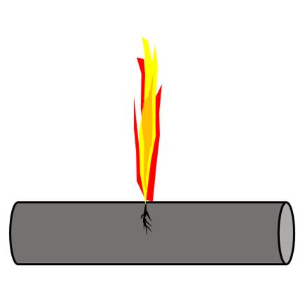 연소는 확산 연소의 형태로 이루어지며, 연료의 부출 속도와 외부 공기의 흐름에 따라 화염의 크기와 길이에 영향을 받는다. 연료가스 배관의 플랜지, 배관의 균열, 이음새 등에서 가스가 누출된 후 외부로부터 착화에 의해 발생한다.