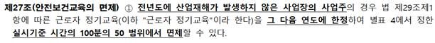 근로자 정기 안전 보건 교육 시간 50% 면제