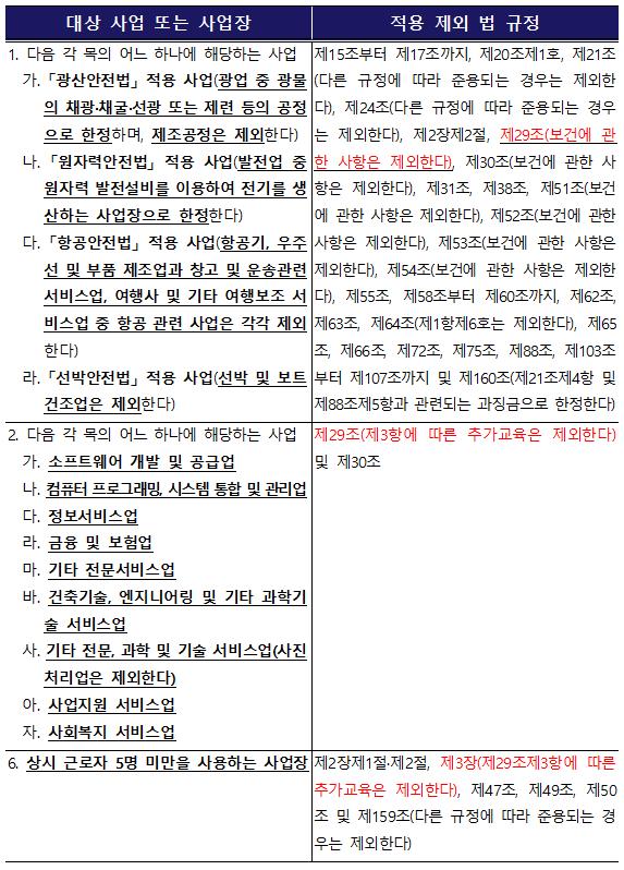 근로자 정기 안전 보건 교육 제외 대상