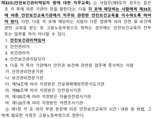 교육 시기에 대해서는 산업안전보건법 시행규칙 제29조(안전보건관리책임자 등에 대한 직무교육)에 자세히 나와 있다.