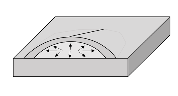 이렇게 수소원자가 계속 들어가면 수천에서 수만 atm으로 압력이 높아지게 되며 외부 응력 없이도 최종적으로는 브리스터링 현상이 발생하게 되어 파괴된다.