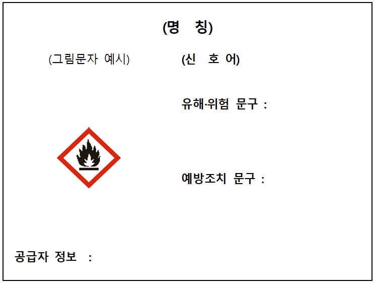 신호 어는 위험 또는 경고에 대해 작성하면 된다. 유해·위험 문구, 예방조치 문구는 해당 물질의 물질 안전 보건 자료를 참고하여 작성한다. 해당 물질 안전 보건 자료에 작성되어 있는 유해·위험 문구, 예방조치 문구를 모두 포함해야 한다.