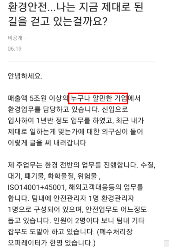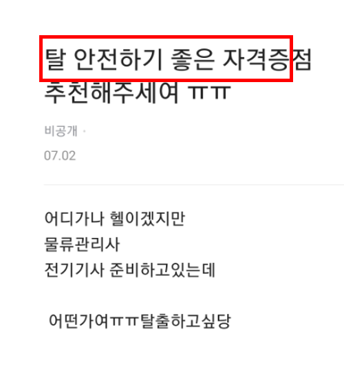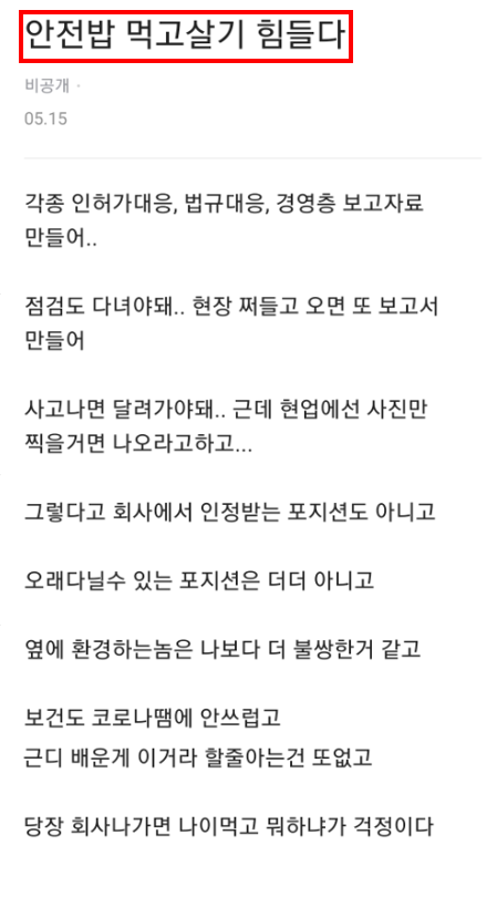 아래는 안전과 관련된 사람들의 커뮤니티 작성내용이다. 안전 업무를 하려고 하는 사람은 한번 읽어봐도 좋을 것 같다.