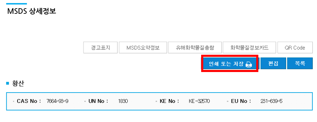 우선 검색 방법에 대해 설명하지만, 검색해서 나온 내용은 절대로 법적인 물질 안전 보건 자료가 될 수 없음을 알아야 한다.